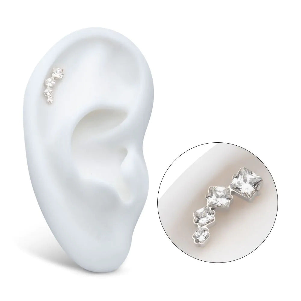 Upgrade your piercing game with our 4 Princess Cluster Top! Made with implant grade titanium and featuring an internally threaded design, this top is perfect for helix or conch piercings. Enjoy both style and quality with our top-notch jewelry. (Thickness 1.2mm 16 Gauge)