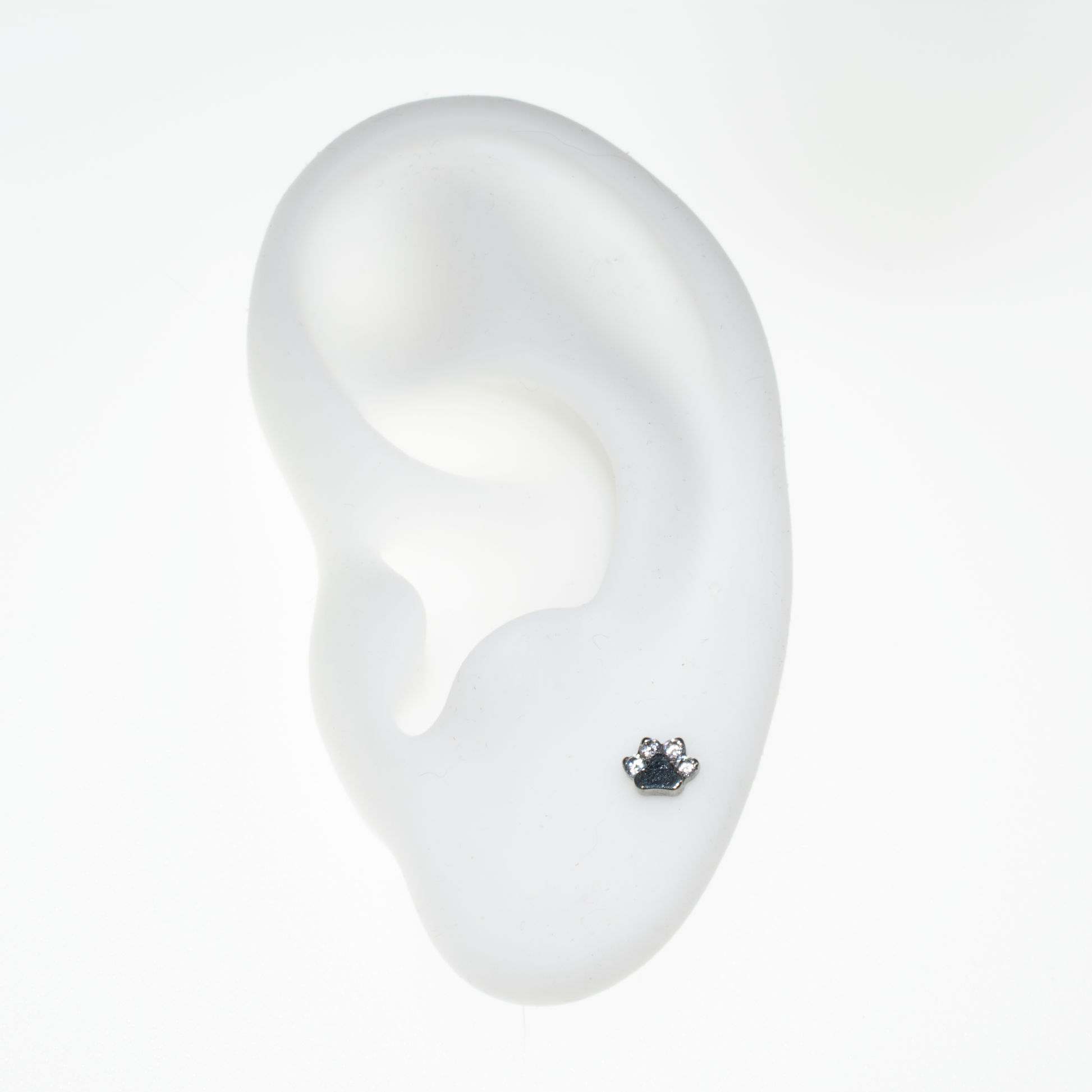 Titanium Internally Threaded with CZ 4-Cluster Paw Top. Made out of High Polish Implant Grade Titanium. Perfect for most ear piercings such as lobes, helix, and tragus.