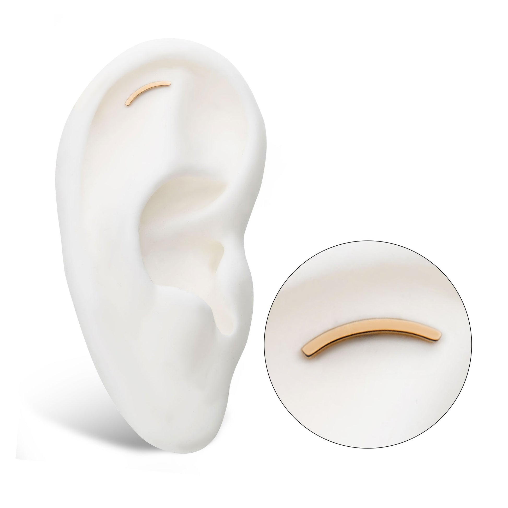 This is made of solid 14Kt nickel-free Yellow Gold with an implant-grade steel pin, designed to be practical and easy to use. This is perfect for helix or even conch piercings.