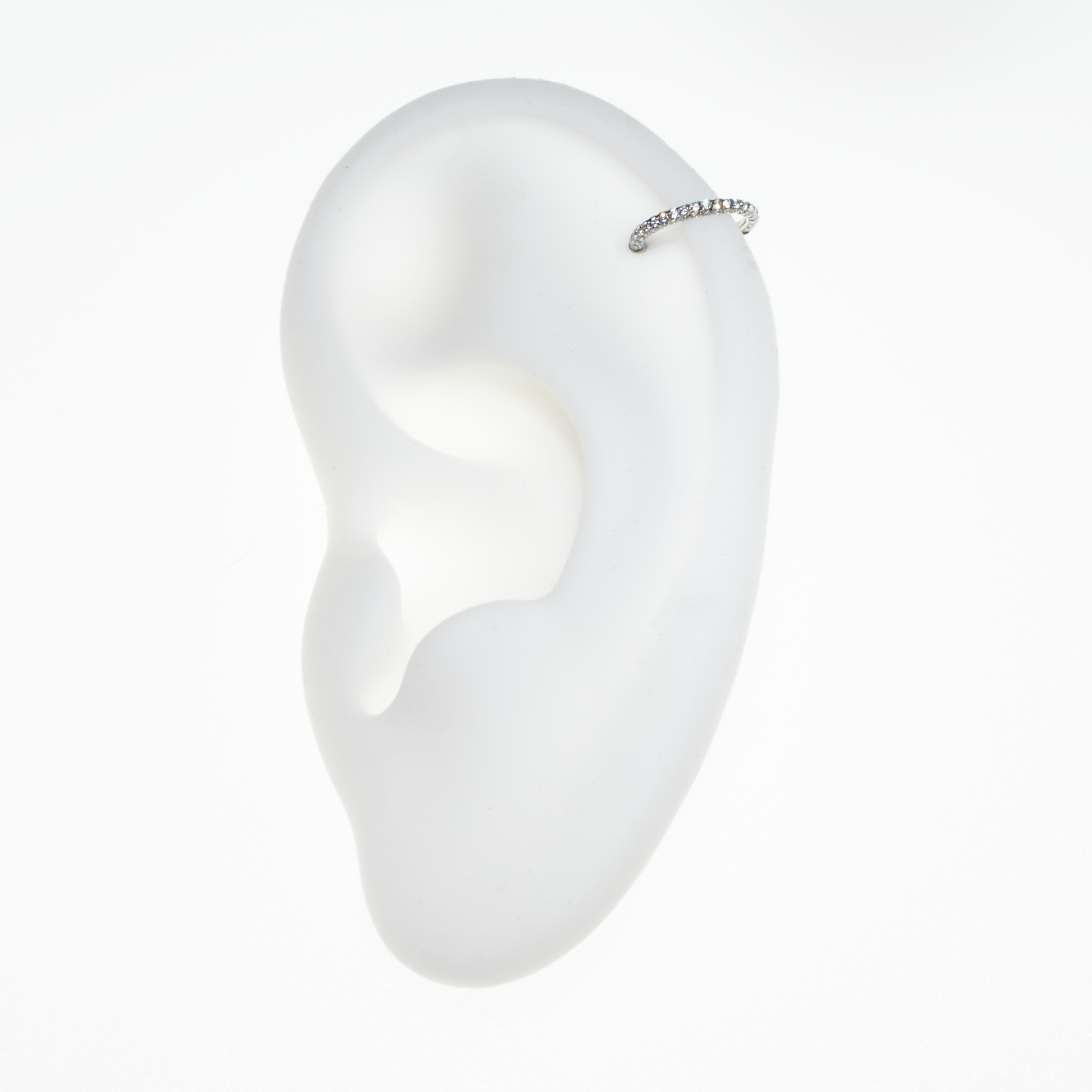 This 3 sided CZ hinge ring is made from implant grade titanium. Is is perfect for a helix, daith, nostril and septum.