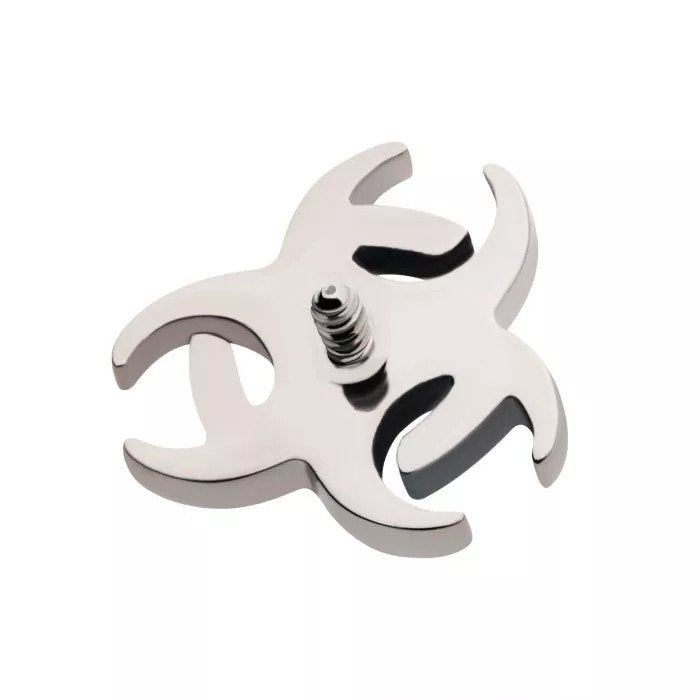This internally threaded biohazard top is manufactured from high polish implant grade titanium. The biohazard top is a perfect choice in lobe, helix or conch piercings if you looking for something a bit different.