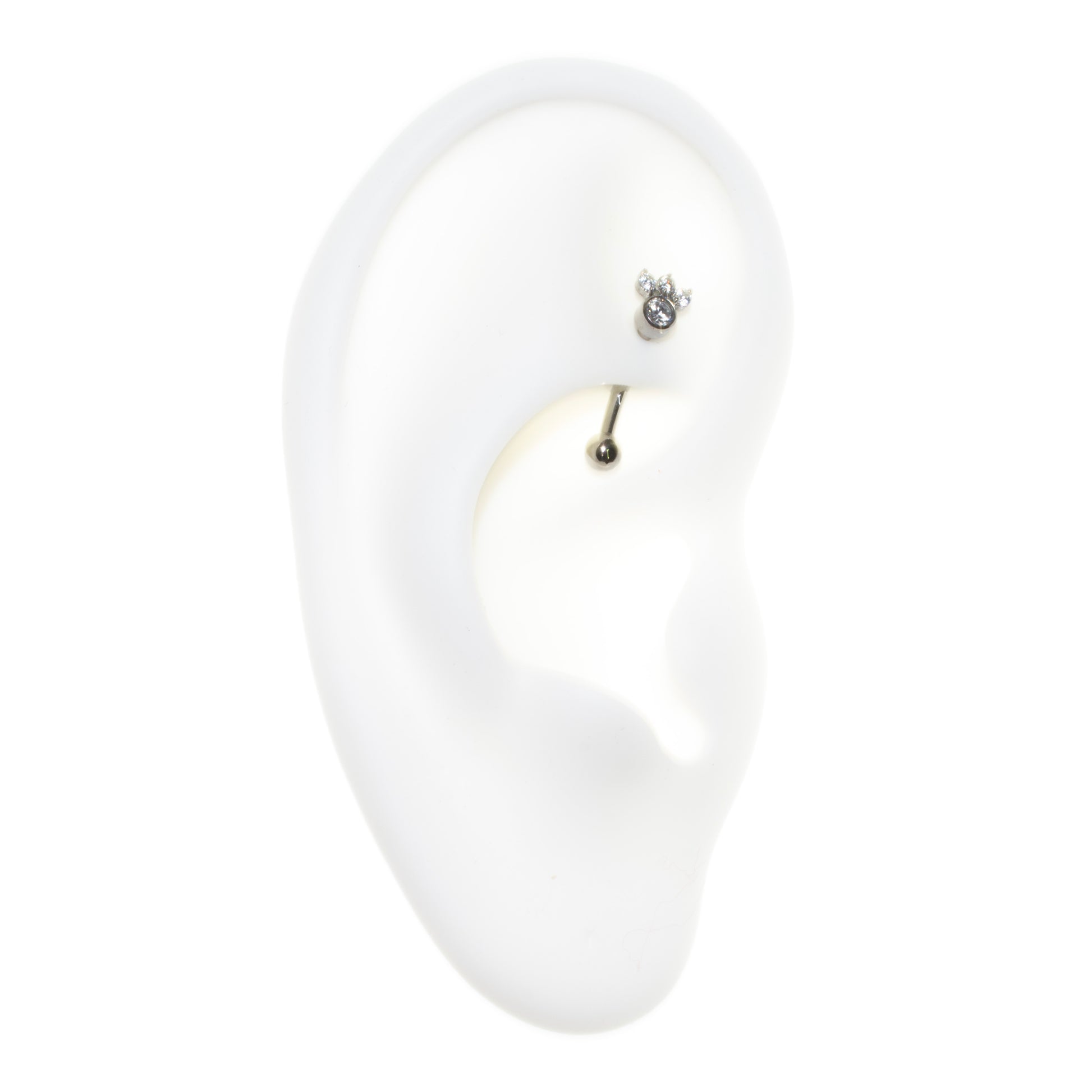This is our internally threaded curved CZ cluster made from implant grade titanium. This is perfect for rook and vertical labret piercings.