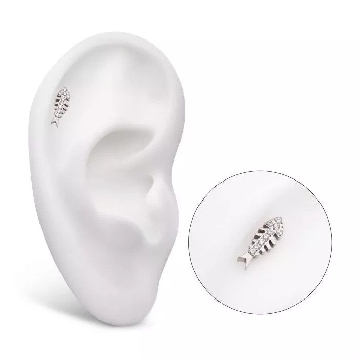 This is an internally threaded pave set round CZ Gem Fishbone Top which is manufactured from high polish implant grade titanium. This top will look great in many piercings such as helix and lobes.