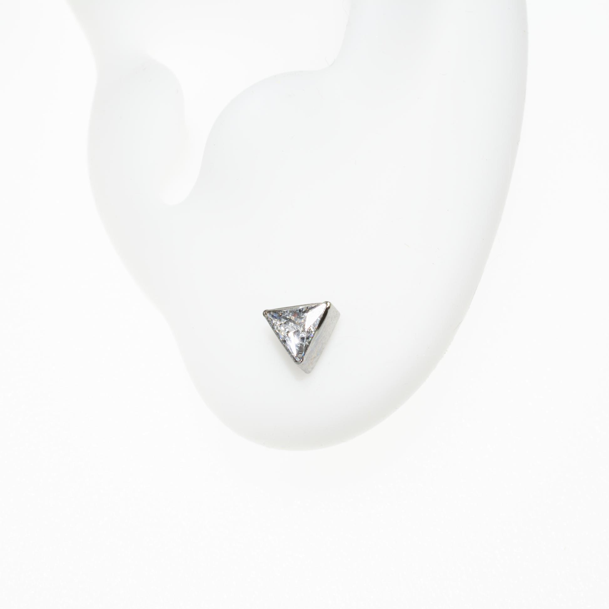 Titanium Internally Threaded Bezel CZ Triangular Shaped Top. Made from Implant Grade Titanium. This will fit nicely in helix, lobe, and conch piercings.