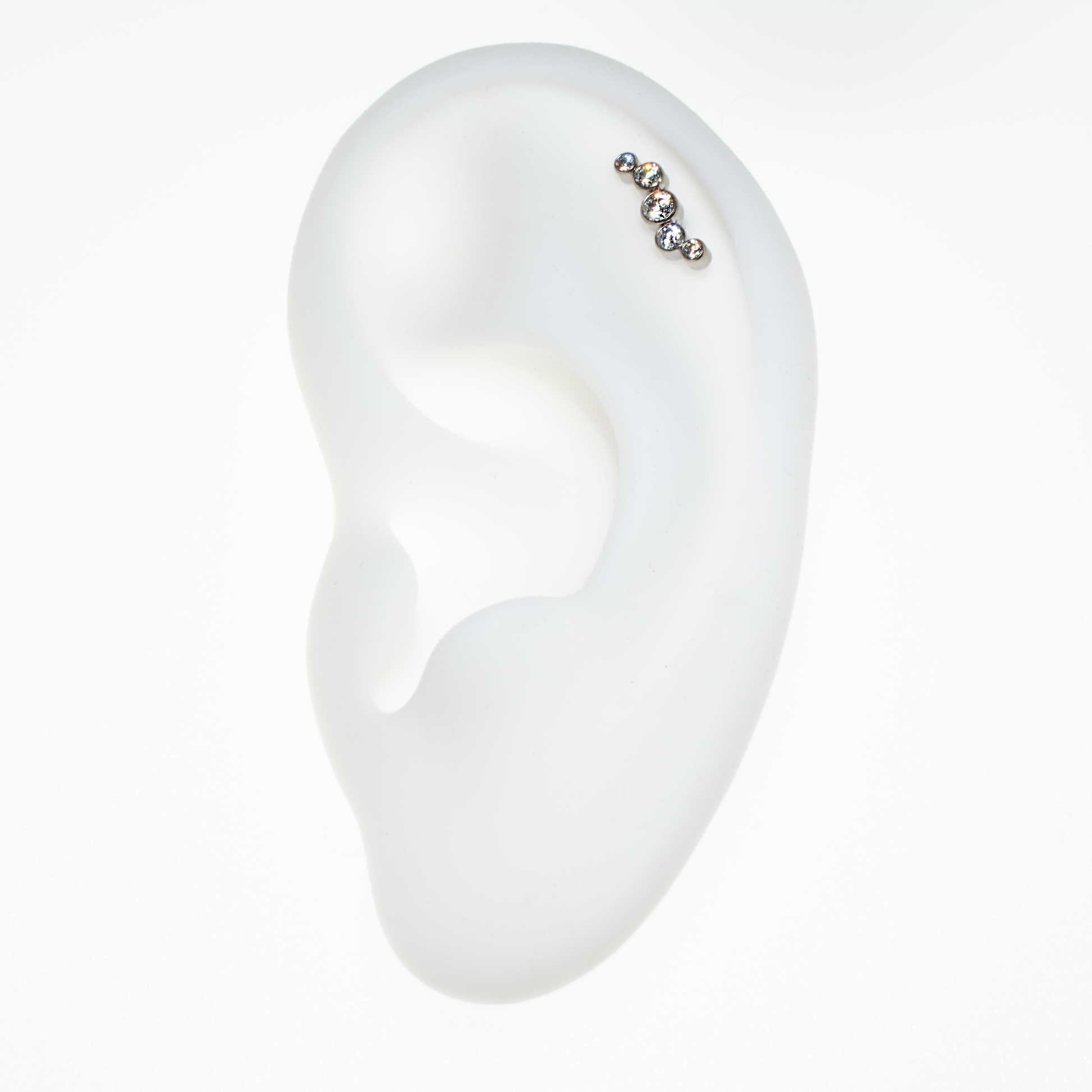 Internally threaded 5 CZ cluster top made with implant-grade titanium. This will be perfect for conch and helix piercings.