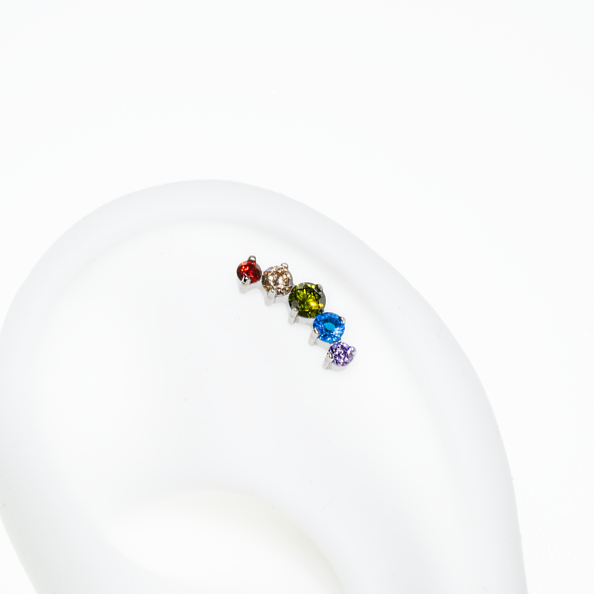 This is our internally threaded rainbow prium top, made from implant-grade titanium. This is perfect for many ear piercings such as helix and conch.