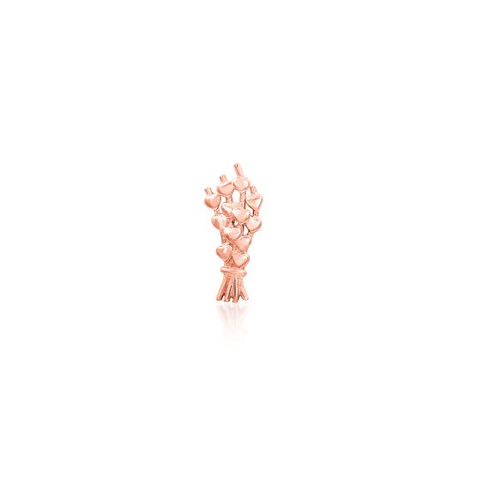 This 14 Karat, nickel-free Rose Gold bundle of hearts measures 4.20mm x 9.10mm, making it perfect for placement around the outer ear or conch.