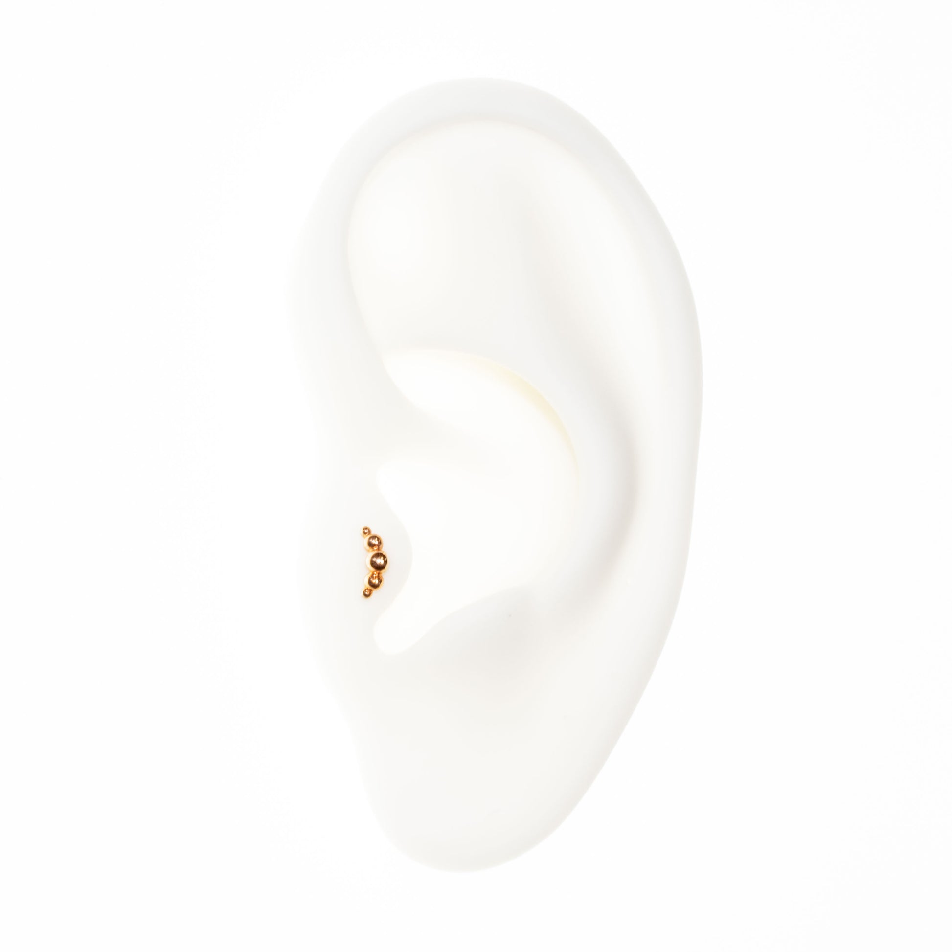 This little croissant is made from 14 Karat, nickel-free Rose Gold. It features a curved, graduated design, expertly crafted to complement the contours of the ear. It will look great in tragus, conch, and helix piercings.