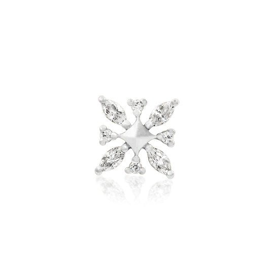 This exquisite 14 Karat, nickel-free White Gold Snowflake top is a tribute to Elsa from Disney's Frozen.