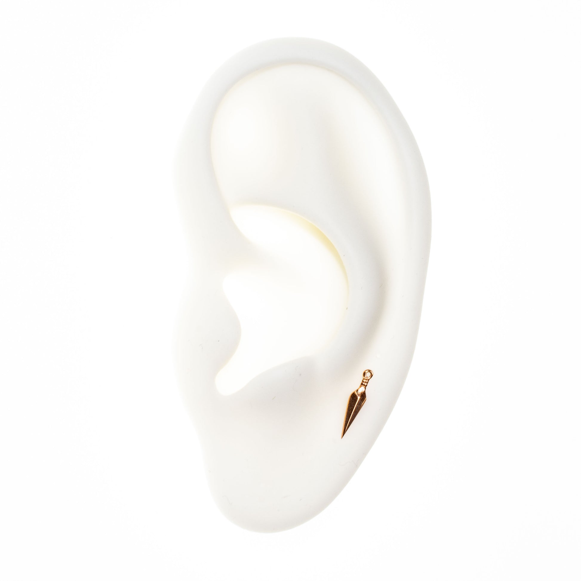 Made of 14 Karat, nickel-free Rose Gold. A timeless design made to last for years. This piece is a beautiful addition to any jewellery collection and would sit well in most lobe, helix, and conch piercings.