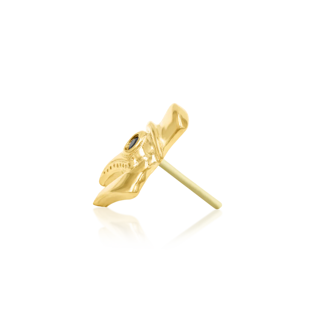 This plague doctor mask is made from 14 Karat, nickel-free Gold and it measures 6.5 x 8mm. It features a 1mm Black cubic zirconia gemstone and will look great in a helix or conch piercing.