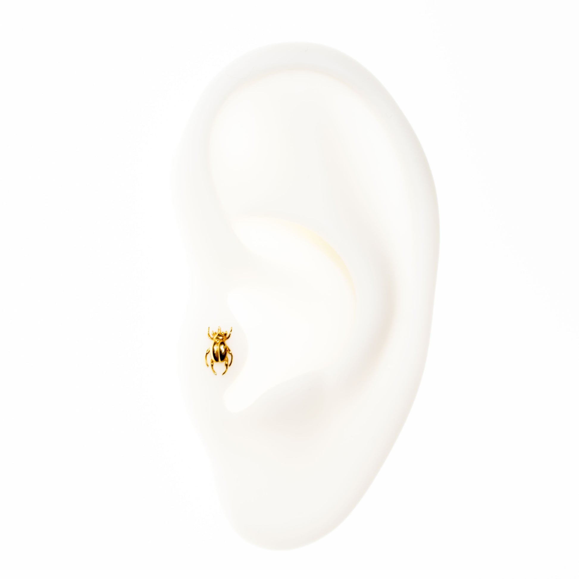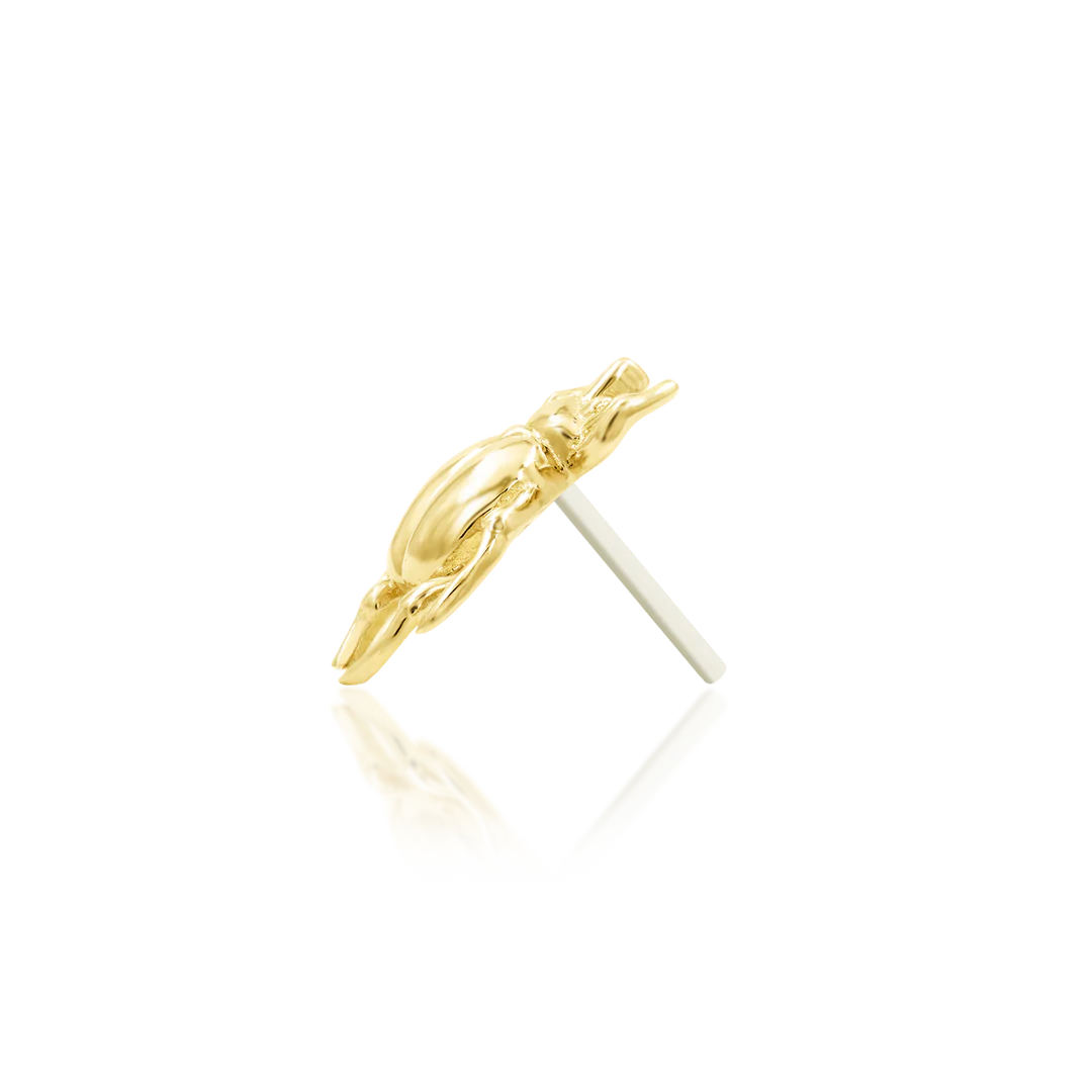 Make a bold statement with this stylish Rhino Beetle! This piece is made from 14 Karat, nickel-free Gold and it's the perfect size for most ear piercings, especially tragus, upper lobe, and conch.