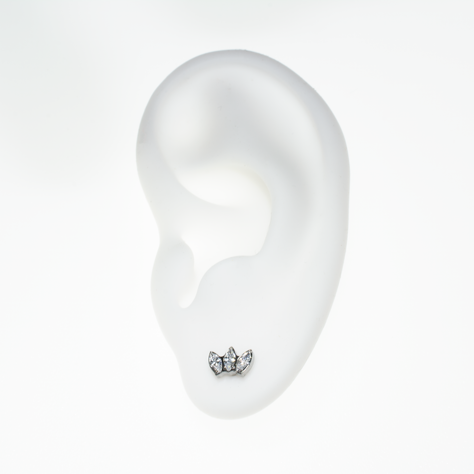 Titanium Internally Threaded top with Triple Marquise CZ Cluster. This is made from high polish implant-grade titanium and will fit perfectly into helix, conch, and lobe piercings.