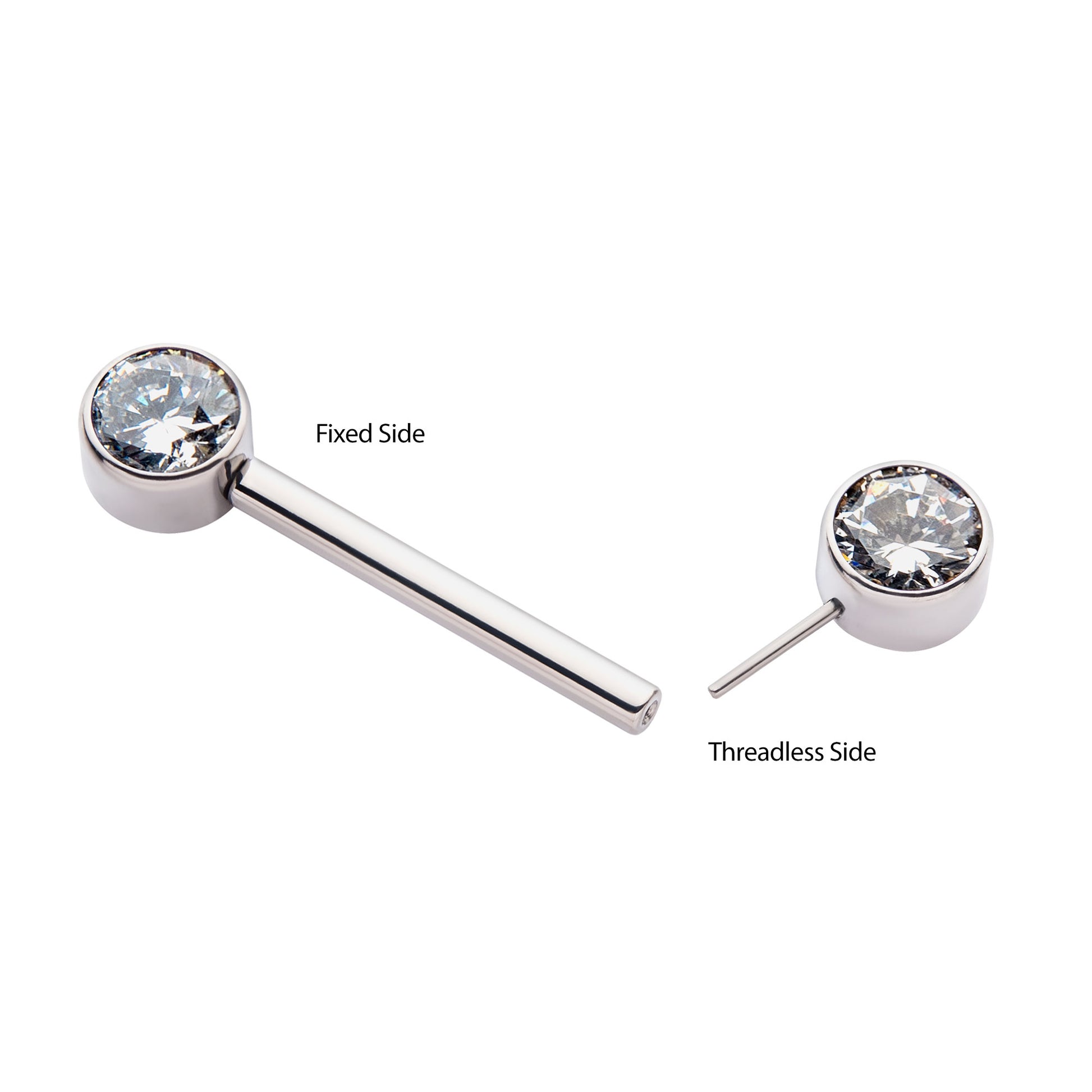 One side of this threadless titanium nipple bar is fixed, and the other side is threadless.