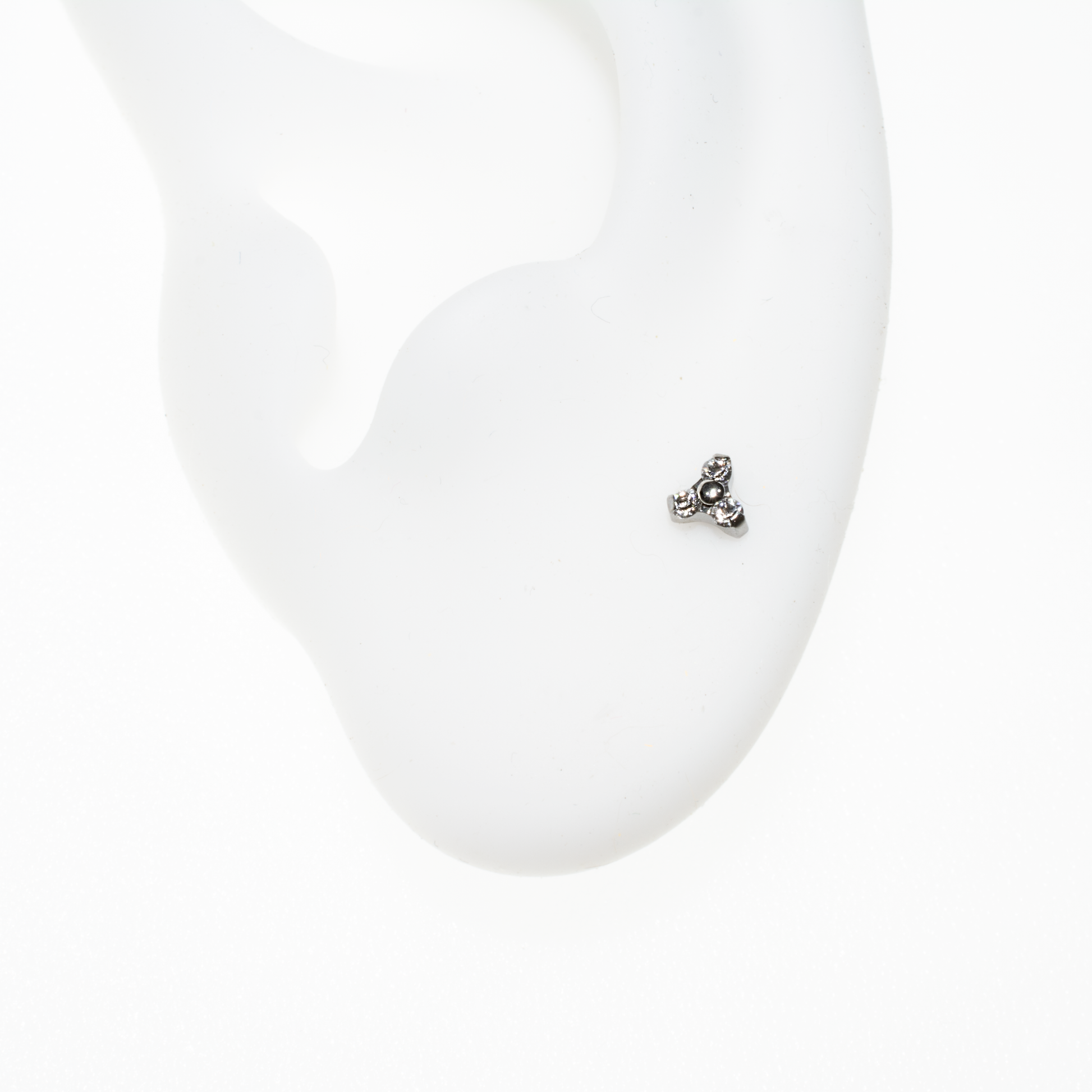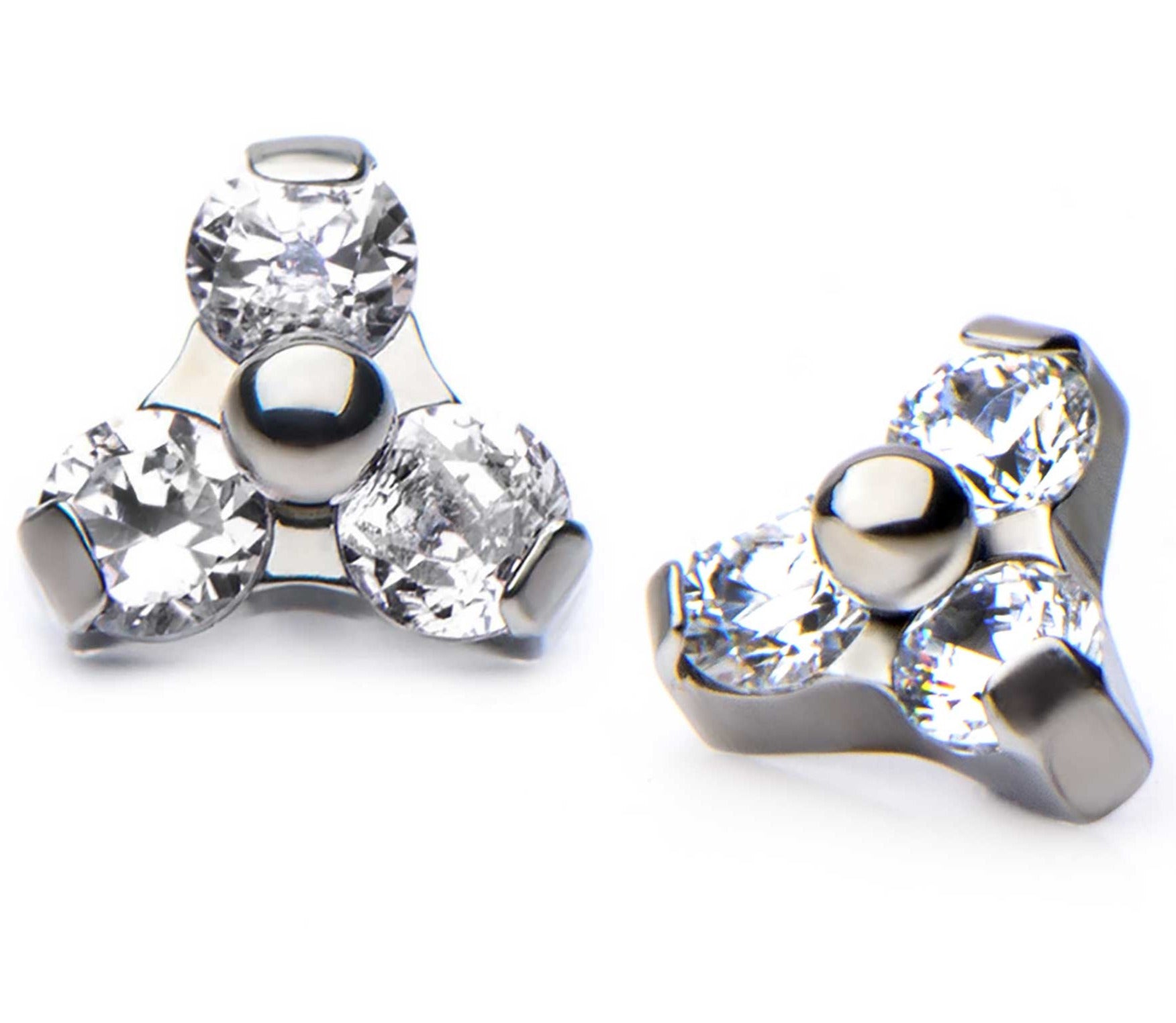 This is an internally threaded CZ clear trio top, made from high polish implant grade titanium. This is perfect for a helix, conch, lobe or tragus piercing.